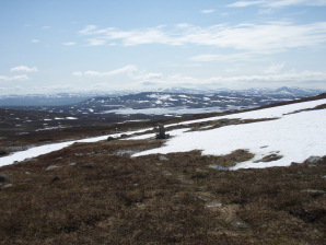 Je verlaat de Tarnasjostugorna in westelijke richting. Het pad loopt samen met de een winterpad aangeduid met rode Andreaskruisen. Vooral de klim vond ik naar Kungsleden normen vrij modderig. Misschien heeft dit iets te maken met de late dooi.