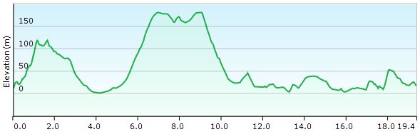 Het te overwinnen hoogteverschil bedraagt ca 250m. Toen ik op de heenreis in de Naturum vroeg, hoe lang men over de klim deed, antwoordde men mij 2 tot 3 uur. Toen ik vroeg, hoe lang dit was voor een persoon met enige ervaring, antwoordde men 1 uur.