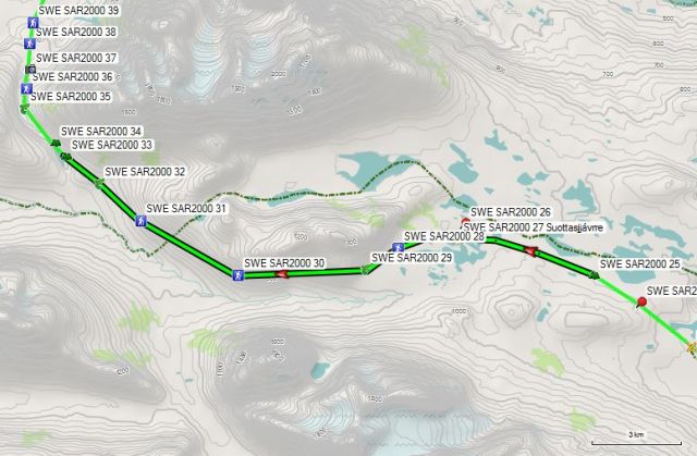 Op het punt 37 heb je een mooi overzicht over het te volgen traject tot aan het Padjelantaleden.
