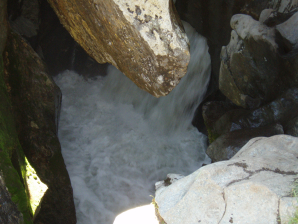 Je dwars de Sulzenaubach en vervolgens gaat het door een terrein met veel rotsblokken gelardeerd met wilgenstruiken vanwege de vochtige bodem. Het verloop van het pad is grillig. Je gaat over een heuvelrugje, gevolgd door een korte afdaling in een verticale wand, alwaar het pad deels met kabels is gezekerd, tot de brug over de rivier. Deze is twee planken breed, zonder leuning. Vervolgens gaat het weer wat omhoog om opnieuw af te dalen tot een brug (AUTST0513), van alwaar twee planken breed zonder leuning. Hier is de stroming zwakker dan aan de vorige brug.