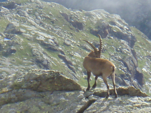 Het is eenvoudiger om de normale route te volgen. Er volgt een vrij steile afdaling met wat kabelzekeringen. Als je hier ’s ochtends als eerste passeert maak je kans om hier steenbokken aan te treffen. Beneden in de kom dwars je de rivier en aan de overzijde gaat het technisch iets eenvoudiger terug omhoog, richting Hohe Burg (AUTST0704) (1u30’).