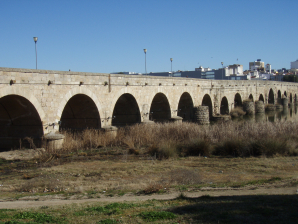 Je loopt hier verder via een weg schuin links. Je volgt deze weg in de richting van een stuk autosnelweg, die hier op pijlers staat boven de riviervlakte. Net voorbij deze brug, gaat het grind over in asfalt. Links vind je een Olympische schietbaan. Je volgt het asfalt en gaat zo onder de A66. Vervolgens gaat het verder richting een rotonde naast de N630. Ook hier ga je onder deze weg. Vervolgens loop je tot aan de oude weg door Santiponce, alwaar je naar rechts gaat.