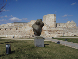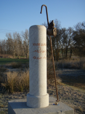Je slaat de eerste straat rechts in en vervolgens weer rechts en links. Vervolgens gaat het in rechte lijn naar Calle Odiel. Hier vind je een eerste monument voor de pelgrim met een “Buen Camino”.