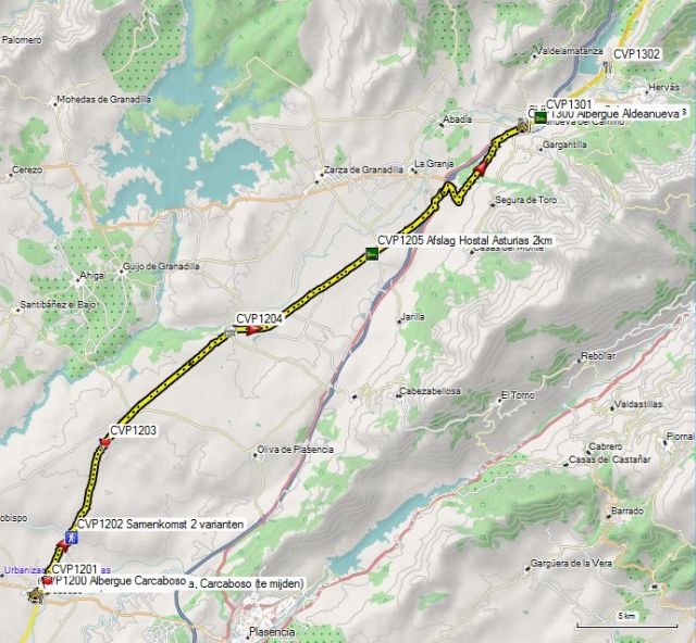 De Hospitalera geeft je uitleg over twee varianten die je de volgende dag kan nemen. De tweede variant verschilt van het door haar voorgelegde kaartje, maar werd door mij gelogd via GPS-punten.