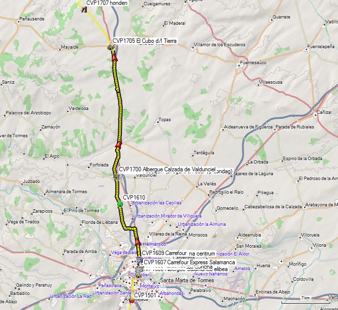 Steek de N-VI over en ga over een landweg tot aan een autosloopbedrijf. Hier voorbij nog enige mogelijkheid om de N-VI te vermijden tot aan een eenzaam huis. Verder over de N-VI tot Astorga.