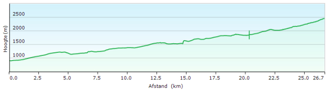 - bij voorkeur een Camelbak met slang met een gezamenlijke inhoud van 2 à 3 liter (reken zeker in de zomer niet te veel op water onderweg. Of de nieuwe modellen met rits even betrouwbaar zijn blijft af te wachten.)