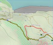 Aan een langwerpig gebouw, ga je scherp rechts, en daal je af in zuidwestelijke richting, tot een volgend kruispunt van paden. Hier ga je kort links en dan onmiddellijk terug rechts in bijna zuidelijke richting. Aan een volgend kruispunt van paden vervolg je alweer in zuidelijke richting.