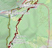 Je vervolgt in zuidelijke richting en 500m verder vind je een tweesprong, alwaar je links aanhoudt en de meest stijgende weg neemt. Je gaat door twee haarspeldbochten en klimt verder richting een geul. De bosweg blijft stijgen richting Rimplas.