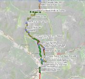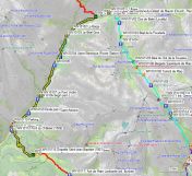 Bovenstaande grafiek verduidelijkt de zaken nog een beetje. Zelfs op zicht kan je hier vaststellen dat het traject langs de GR5 beduidend minder hoogtemeters maakt dan het traject langs de GTA. De hellingen langs de Italiaanse kant zijn steiler, en vaak krijg je er meerdere per dag te verwerken. Langs de Franse zijde gaat het allemaal net iets geleidelijker. In de Valle di Susa is de horizontale afstand tussen de GTA en de GR5 groter dan in de buurt van Larche, alwaar een variante van de GR5 de Italiaanse kant kiest om een traject langs het asfalt op de GR5 te vermijden. Via deze variante kan je in één dag overschakelen van GTA naar GR5 via de Col de Sautron/Colle del Sautron (2687m), die door zijn zuidelijke ligging al redelijk vroeg sneeuwvrij kan zijn.