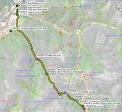 Het pad komt uit op een bredere weg, die van rechts uit de vallei komt. Wanneer deze zich splitst, vervolg je alweer in pal zuidelijke richting, en zet je de afdaling in. Je negeert de afslagen naar rechts, en vervolgt langzaam dalend in hoofdzakelijk zuidelijke richting.
