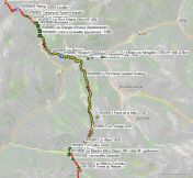 Vanaf GPS1604 vallen markeringen op het terrein, en de Rother tracklog weer samen tot vlak voor Quincinetto en meer bepaald GPS1610. Rother volgt hier een traject via Airale. De GTA markeringen leiden je omlaag via Torredaniele. Bij (GPS1612) houdt de markering op en loop je verder via het asfalt richting ‘centrum’ en vervolgens tot aan de hoofdweg. Deze variant blijft dus iets langer weg van het asfalt, maar je moet een kort stukje langs de hoofdweg (SS26) in het dal. Aan de brug over de rivier Dora Baltea (GPS1614) komen beide varianten weer samen.
