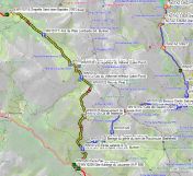 Je volgt de scheidingslijn tussen bebouwde kom en bos tot aan een haarspeldbocht op de hoofdweg (139). Alhier vind je een splitsing met de GR52A. De GR5 gaat hier rechtdoor en je dringt het stadje binnen. Op het eerstvolgende kruispunt, ga je naar rechts. Op het volgende kruispunt, ga je naar links richting hoofdweg. Je volgt deze naar rechts om hem onmiddellijk weer te verlaten voor een mindere weg naar links (133). 200m verder ga je op een tweesprong naar links en je klimt naar de asfaltweg (134), welke je zonet verliet. Je dwarst deze en bij een volgende passage (135), neem je schuin links. Je bereikt opnieuw de weg, maar deze keer volg je hem in oostelijke richting tot aan het kruispunt 150m voor de kerk van Valdeblore. Hier vind je de splitsing met de GR52A (79).