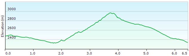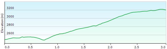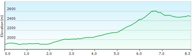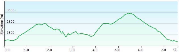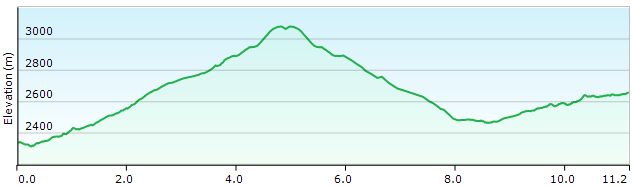 Deze etappe heet niet voor niets de koninginnenetappe. Het is veruit de kortste, maar ook de steilste en de meest technische. Je begint met een eenvoudige en wat frustrerende afdaling van 150m tot GPS-punt AUTWH0403 Pad. Vanaf hier begint een zeer steile klim, eerst door steil grasland, via een zeer smal paadje dat niet veel ruimte laat voor fouten. Het gebruik van stokken is hier absoluut aan te raden. Na de oversteek van een bergbeekje in een kloofje ( AUTWH0404) gaat het verder nog wat omhoog door grasland, tot je uitkomt op een reusachtige steenslaghelling. Wij hebben deze klim gedaan met ons hoofd in de wolken, waardoor je weinig overzicht had over het landschap. Eerst gaat het via korte zigzag bewegingen omhoog. Later via een zeer grote zigzag naar links en dan naar rechts om uiteindelijk weer in korte zigzaggen omhoog te gaan naar rechts tussen twee rotswanden. Het stenenveld lijkt dood te lopen op een kleine punt van een sneeuwveld. Hier dwars je de punt van het sneeuwveld horizontaal en vervolgens vind je de kabel die je in de flank net boven het sneeuwveld naar de pas zal leiden. Het is interessant om hier je stokken weg te bergen tot na de derde kabel in de afdaling, gezien ze anders toch maar in de weg zullen zitten en je beide handen beter kan gebruiken op de kabel en in de rotsen.