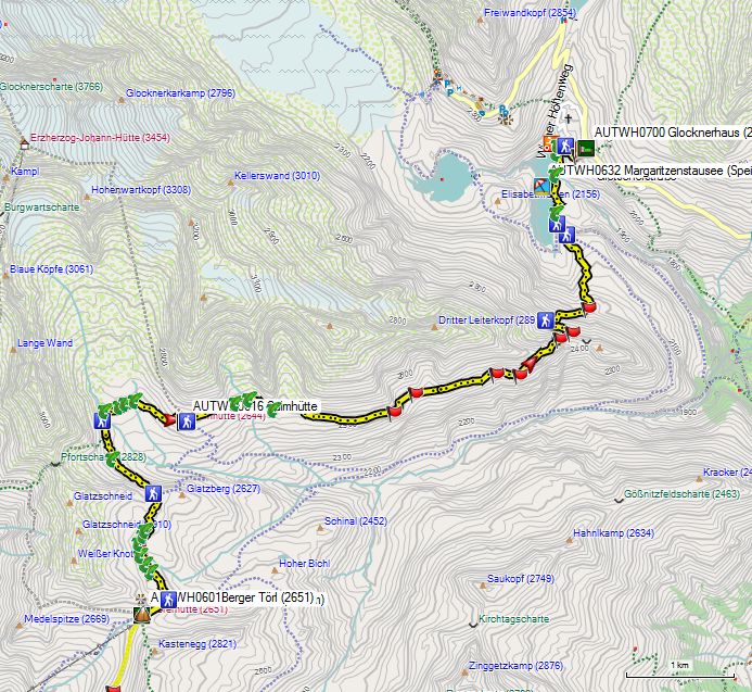 Wie in het Defreggerhof (AUTWH00V02) geboekt heeft kan via de variante die langs het vakantiehuis/hotel passeren naar de Winklerner Hütte (zie kaart en grafiek hierboven). Alleen zijn ze daar tegenwoordig alleen nog geïnteresseerd in verblijven van minimaal 3 nachten :-(.
